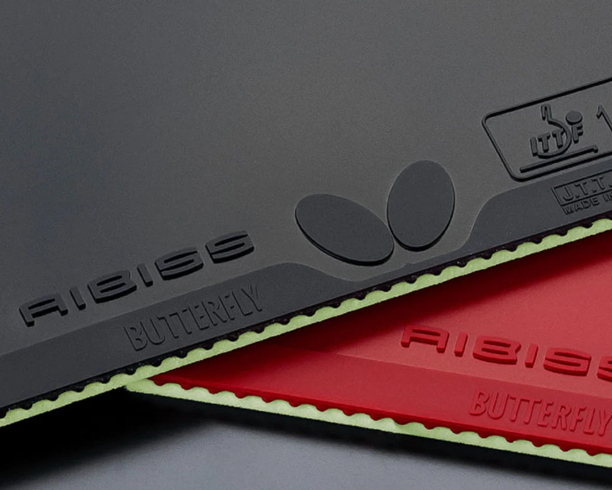 Butterfly Aibiss is a high‑friction rubber that balances the unique characteristics of friction rubbers with the performance of traditional high‑quality Butterfly sheets. Its specialized top sheet, designed with a unique pimple shape, enables devastating spin potential. Combined with a very hard sponge, Aibiss delivers controllable speed, heavy spin, and a high throw angle—ideal for precise technique and counter‑attacking play.